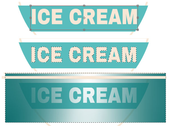 Copy (Control-C) and Paste (Control-V) the "ICE CREAM" banner and apply a gradient fill, using the Gradient panel, that goes from dark teal (Section 3, Step 4) at 100% to 0% to 100% Opacity.